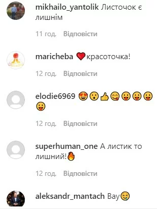 Фанати зацінили сміливість Насті, залишивши під фото понад п'ять тисяч лайків і десятки коментарів, в яких, серед іншого, відзначають той факт, що «листочок, мабуть, зайвий».