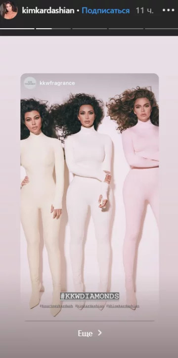 Як повідомляє Politeka.net Кім Кардашьян знає, що немає кращого промо для лінії стягуючої білизни, ніж власний приклад. Практично кожну нову модель Diamond Kim KKW Fragrance зірка приміряє сама і демонструє підписникам, як вона працює.
