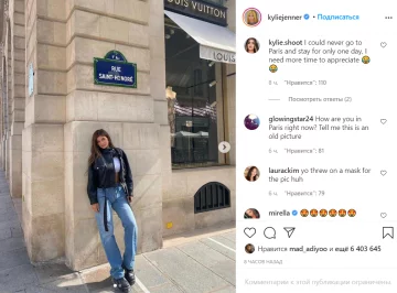 На додаток спокусливому аутфіту Кайлі підібрала черевики чорного кольору, а також не забула про захисну маску. Волосся юна красуня розпустила по плечах, а макіяж зробила в нейтральних натуральних тонах. Зірка зробила селфі, а також показала фото в повний зріст біля входу в магазин одягу Louis Vuitton, де розпахнула куртку, показавши, що під нею ховає.